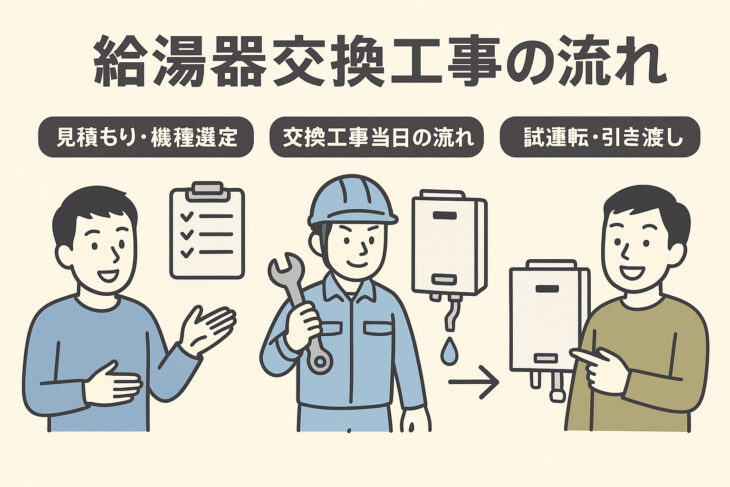 この記事では、給湯器交換工事の流れを初めての方にもわかりやすく紹介します。