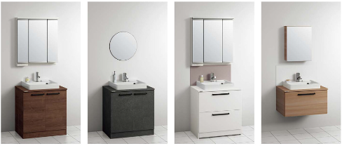 化粧室と浴室をバリアフリー化し段差をなくす事が主流となる昨今、床続きで同じ色調とすれば空間が広く感じられ、一体感が増します。