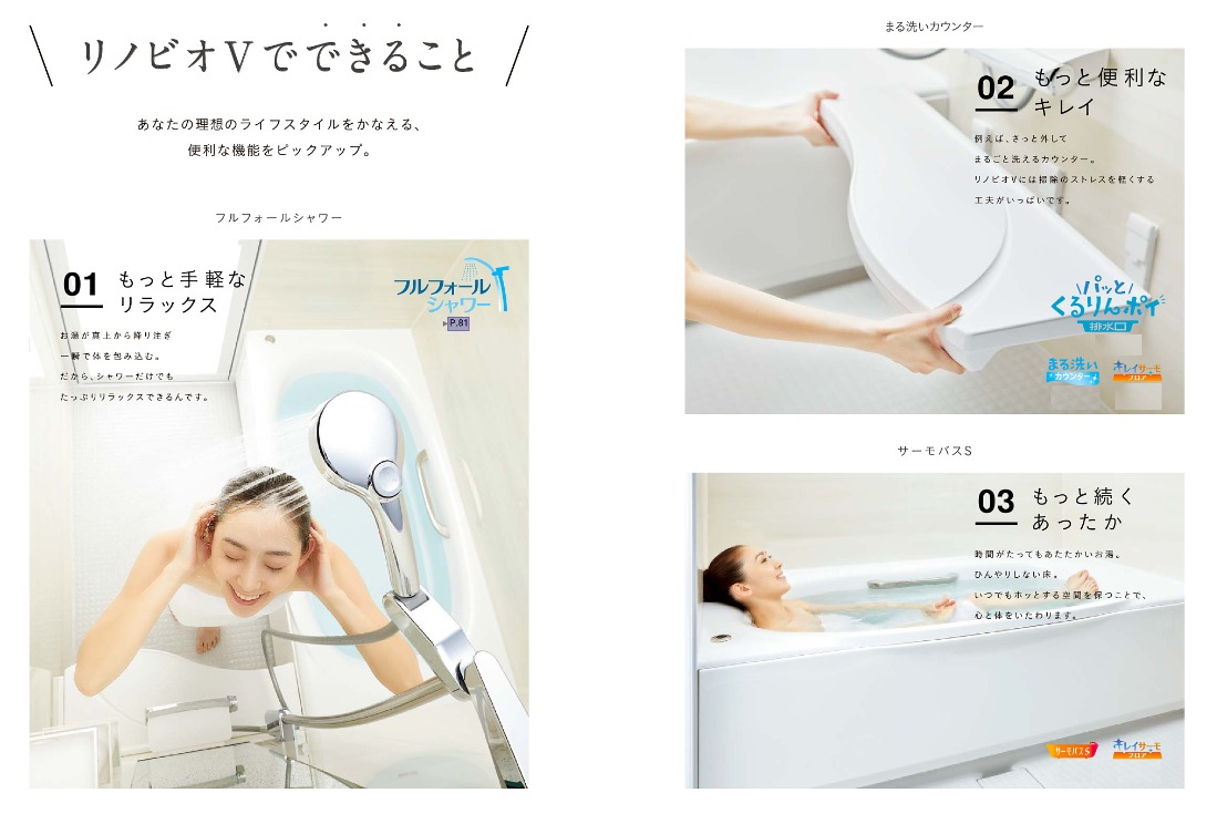 ライフスタイルも、くつろぎも、十人十色。 リノビオVなら、あなたのライフスタイルにぴったりのバスルームが見つかりますお客様のもっとを実現