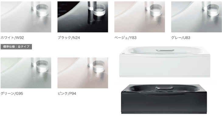 浴槽カラーは全6色。浴槽とエプロンのカラーコーディネートも可能です