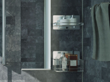 どんな壁にも調和する、ヘアライン仕上げの金属製プレートとワイヤーラック。つけたり、外したり、収納アレンジが自在。クリン軟水