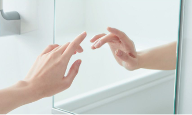 親水性の特殊フィルムで、キレイが長持ちするミラー。くもりにくく、お手入れ簡単。ヘアキャッチャー
