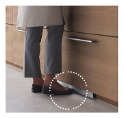 つま先で軽く押すだけで水を出し止めできる機能がオプションでつけられます。水栓レバーをさわらなくても水が出せるので、水栓レバーが汚れません。すべり台シンク