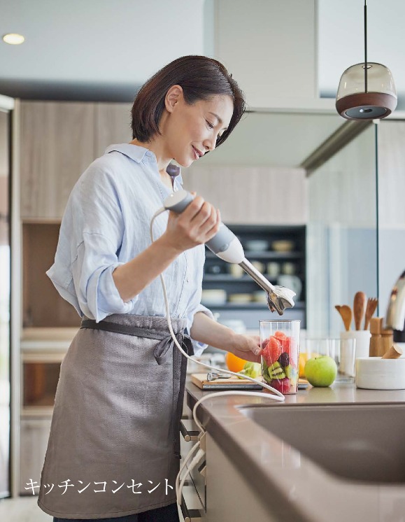 調理家電がサッと使える。キッチンのためのコンセント。取っ手に合わせた3色のバリエーションセラミックトップ