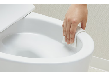 便器のフチを丸ごとなくし、サッとひと拭き、お掃除らくらくです。
