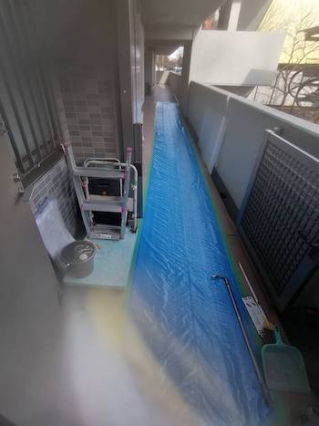 | 床や建物に傷や汚れを付けない為の養生。 | 家の中同様、外もしっかり養生がされています。 |