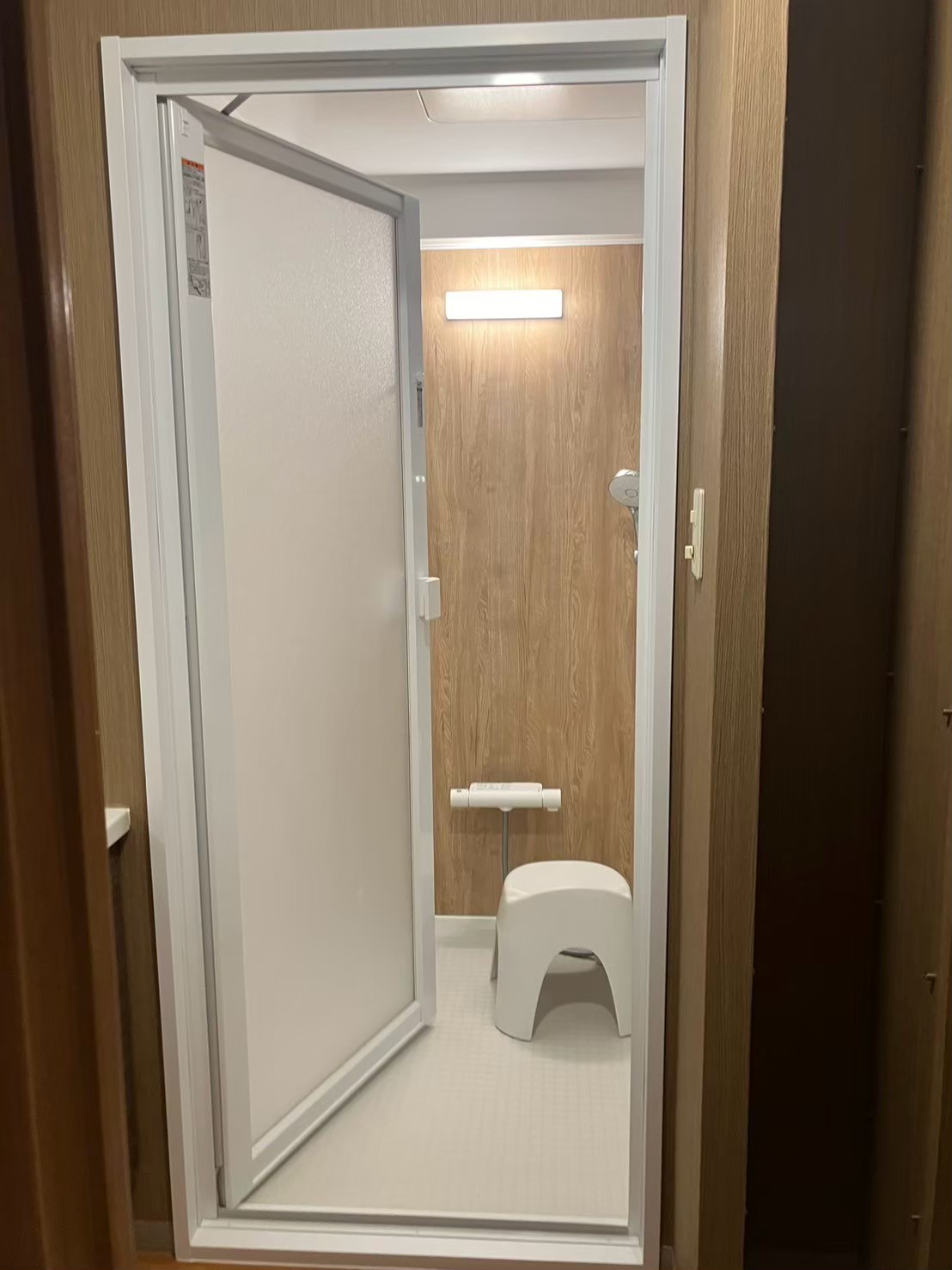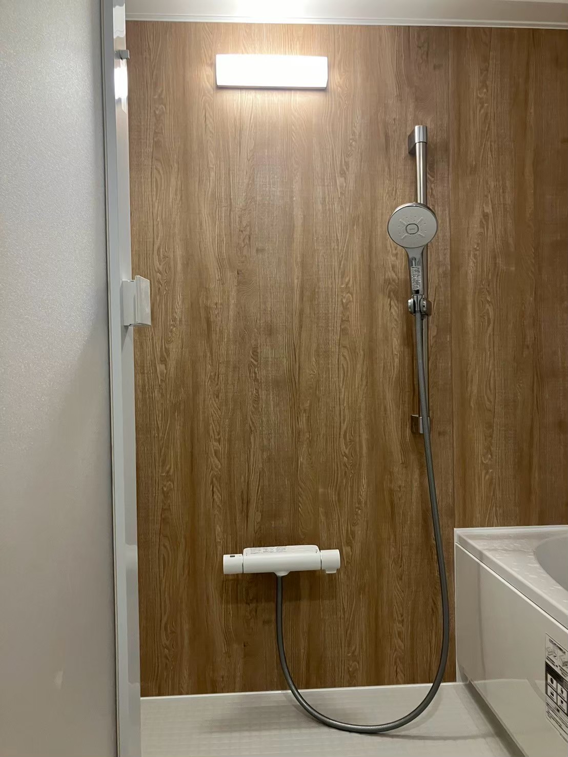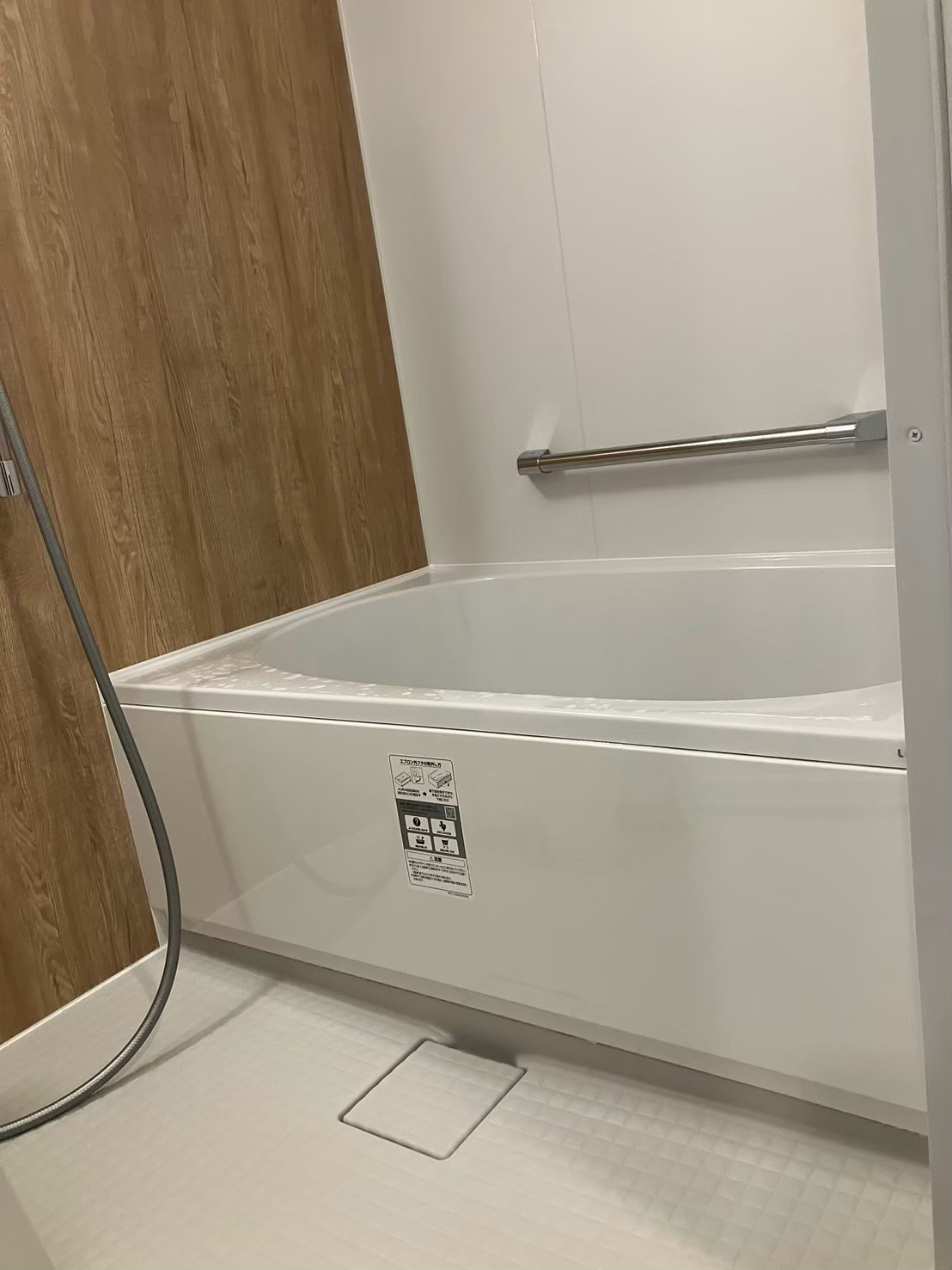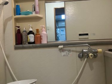ミラーを撤去したことにより空いたスペースに可変式のシャワーフックを設置。お好みの高さでシャワーをお使いいただけるようになりました。