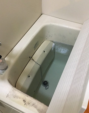 経年劣化によって白色の浴槽はくすみ、カビが生えてしまっています。