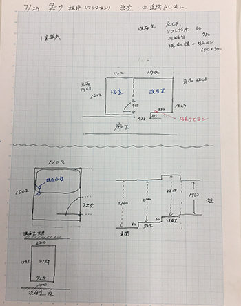 一つひとつの空間を丁寧に採寸し、施工の準備を整えていきます。