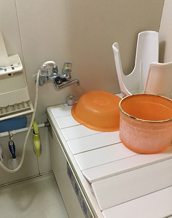 浴槽の蓋の上も、物置きスペースになってしまっていますね。