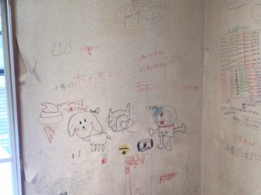 | お客様のご要望 | リビングの壁にびっしり書かれた、落書きの部分を素敵な壁紙に交換したいです! |
