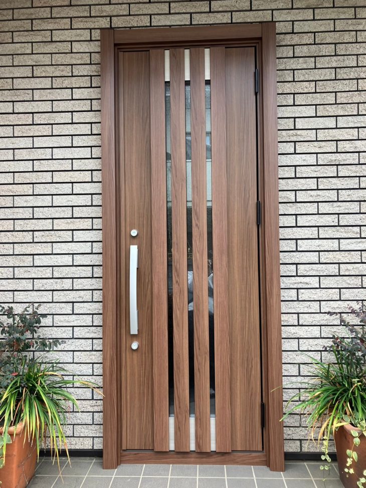 一日で施工が終わる、LIXILリシェントをお勧めさせていただきました。 玄関ドアに施されているガラススリットからの光が、玄関を温かい雰囲気にしてくれます。 |